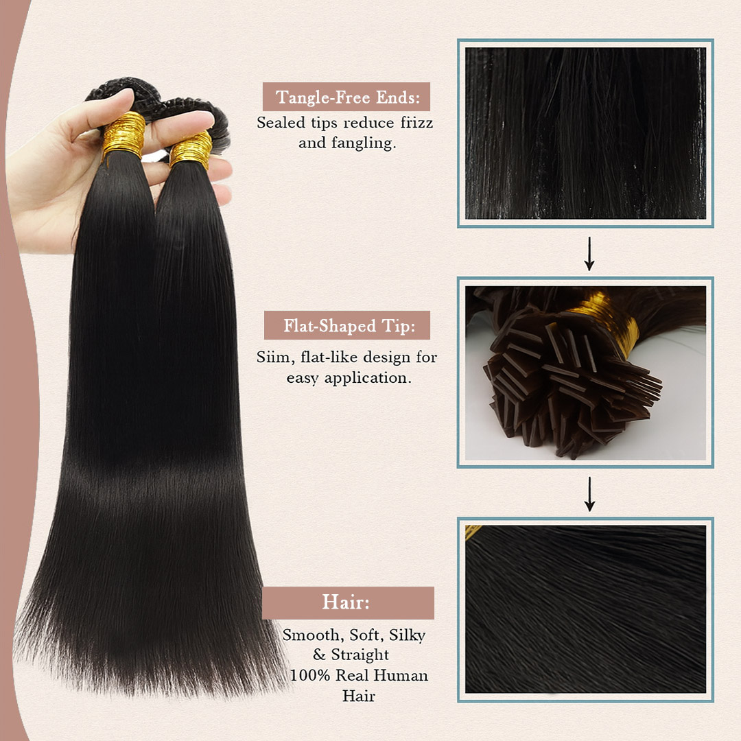 Each strand moves naturally, stays tangle-free, and delivers consistent volume from root to tip. Whether you’re looking for fuller hair, extra length, or a polished everyday style, flat tip extensions offer a sleek, salon-quality finish that stays flawless for weeks.