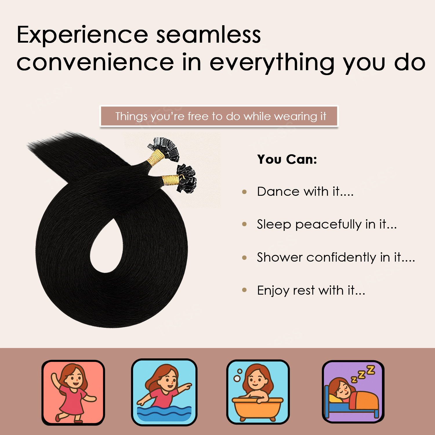 Flat Tip hair extensions with smooth keratin bonds that lie flat, blend naturally, and provide long-lasting length and volume with a comfortable, lightweight feel.