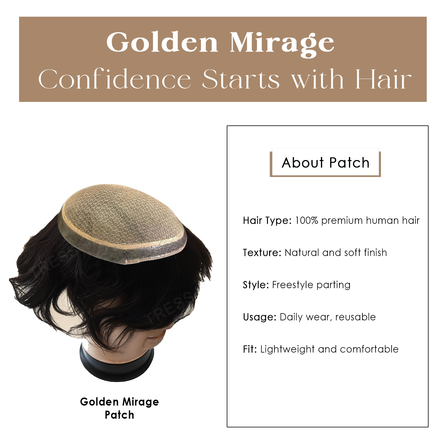 Golden Mirage Hair Patch designed to provide neat hair coverage with a natural-looking finish. Comfortable to wear when adjusted properly and suitable for daily use or special occasions.