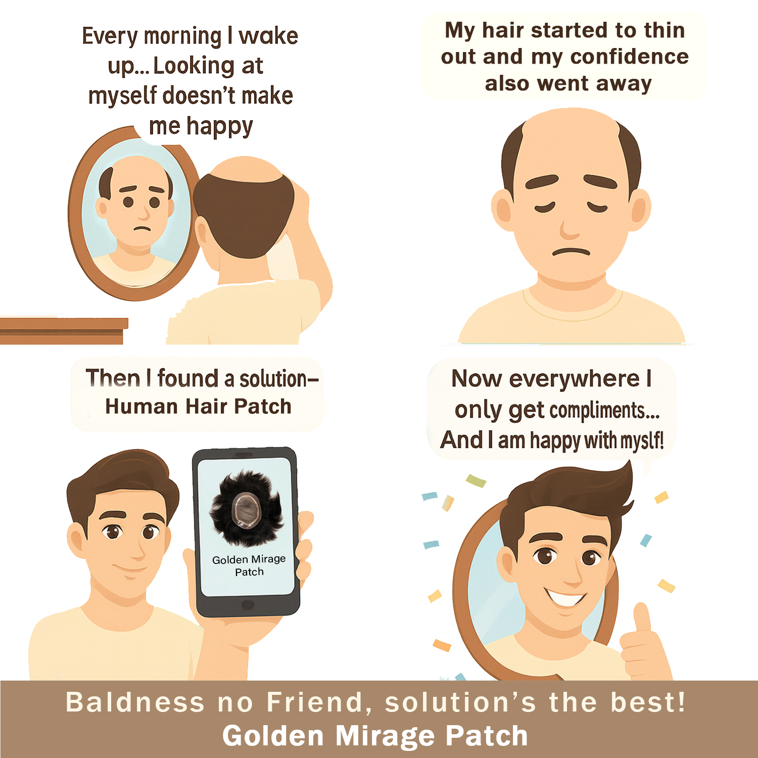 The Golden Mirage Patch is designed to offer refined hair coverage with a smooth, natural-looking finish and comfortable wear. Its base is crafted to sit flat on the scalp, supporting a neat fit and easy styling when adjusted properly. The patch helps enhance overall appearance by providing balanced coverage and a polished look suitable for daily wear, professional use, or special occasions. The Golden Mirage Patch is 2practical choice for those seeking a well-finished hairstyle with comfort and confidence.